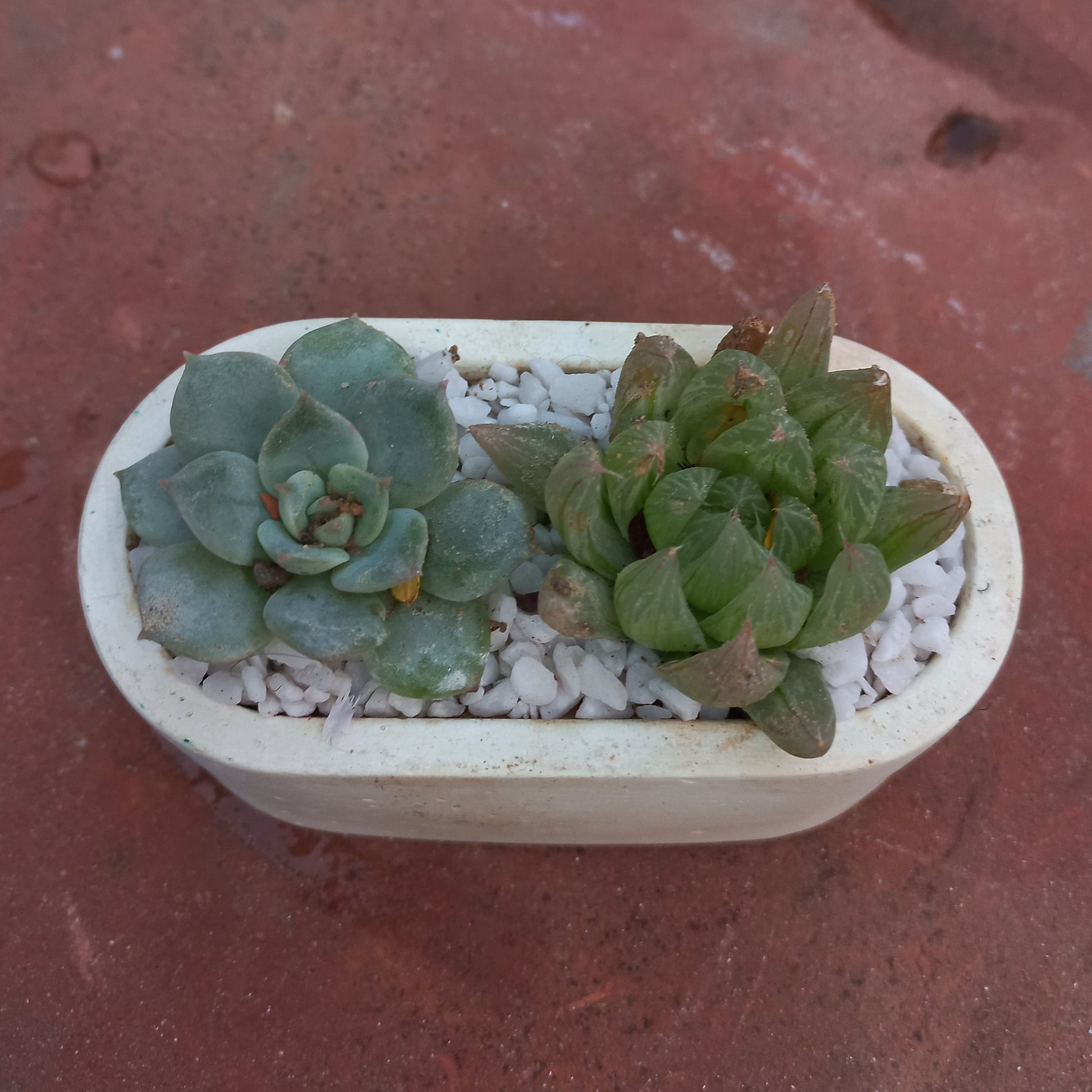 Echeveria Haworthia duo Capsule Cement Pot